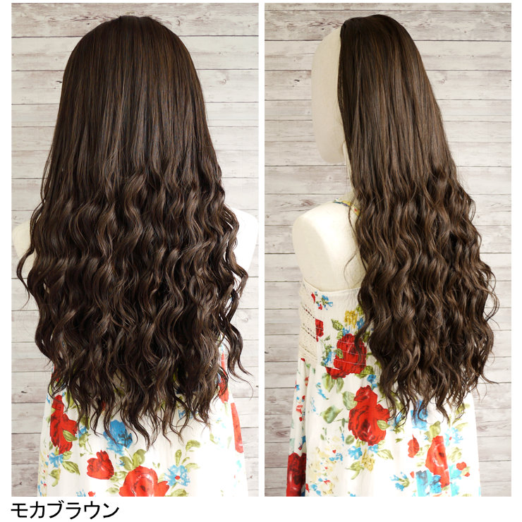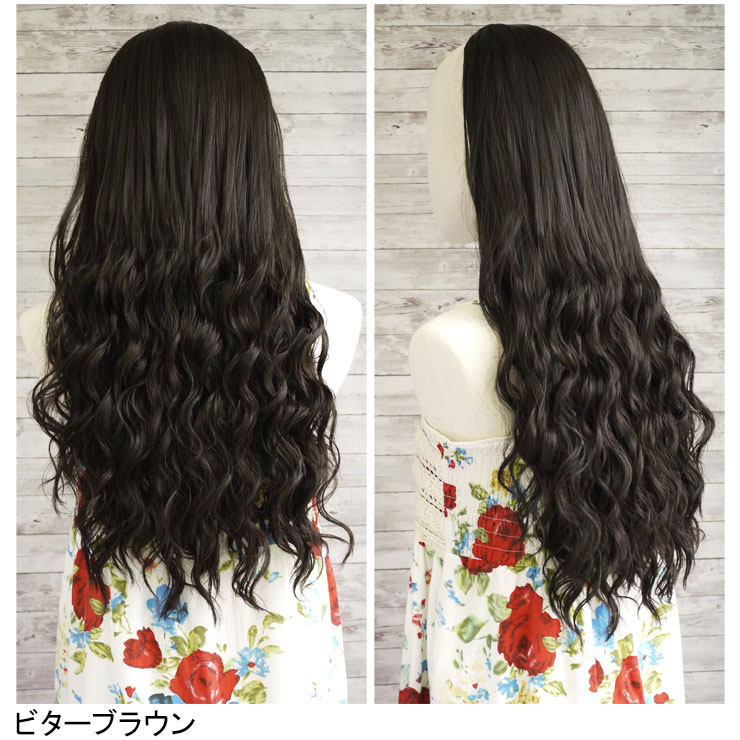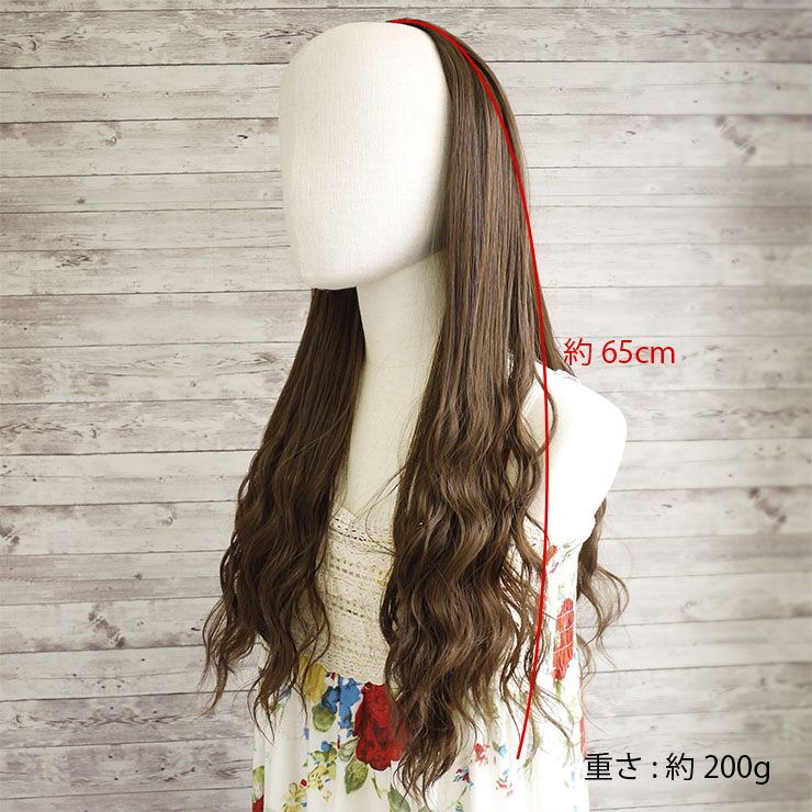 頭頂部より後部に装着するハーフウィッグです。ストッパーピン(パッチン止め具)が裏面に3箇所に付いているので簡単に装着できます。